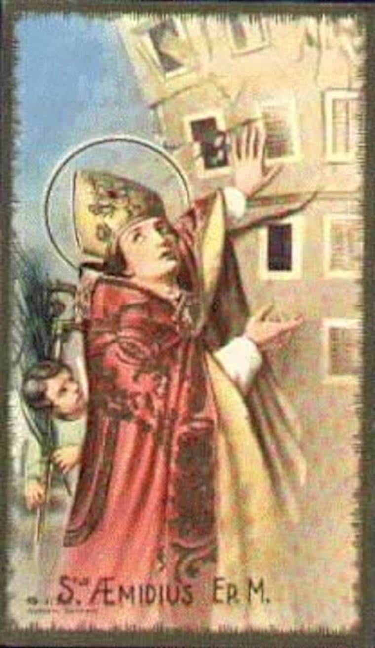 San Emigdio, recordado como el primer obispo de Ascoli Piceno en Italia, ganó este título debido a un hecho milagroso atribuido a su intercesión, luego de un fuerte terremoto en 1703, la ciudad no sufrió daños, lo que fortaleció la devoción hacia él y lo convirtió en símbolo de resguardo ante la actividad sísmica.