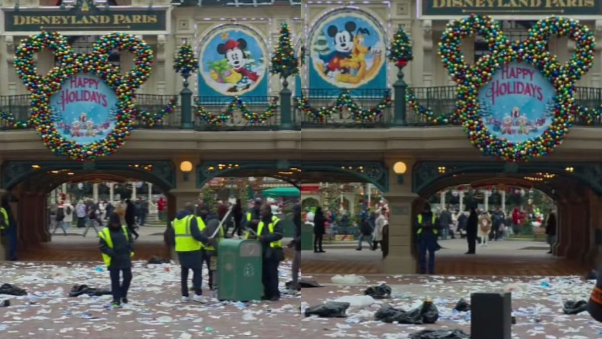 Visitantes de Disneyland París se encontraron con un espectáculo inesperado el pasado fin de semana, trabajadores de limpieza del parque arrojando basura en la entrada principal, acción que fue captada en video y compartida rápidamente en redes sociales.