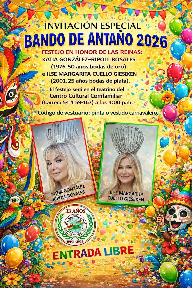 En este evento de gran importancia cívica y cultural se efectuará en honor de los 25 años del reinado de Ilse Margarita Cuello Gieseken, reina en el año 2001 (bodas de plata) y de los 50 años del de Katia González-Ripoll Rosales, reina en 1976 (bodas de oro), y de la actual reina 2026 Michelle Char Fernández, a quienes se les realizará un homenaje especial, el día martes 20 de enero de 2026 a las 4:00 p. m. en el Centro Cultural Comfamiliar (carrera 54 No. 59-167), en compañía de su corte real e invitados especiales de otras entidades y personalidades que han estado trabajando por engrandecer con sus aportes culturales y económicos al carnaval de Barranquilla.