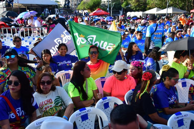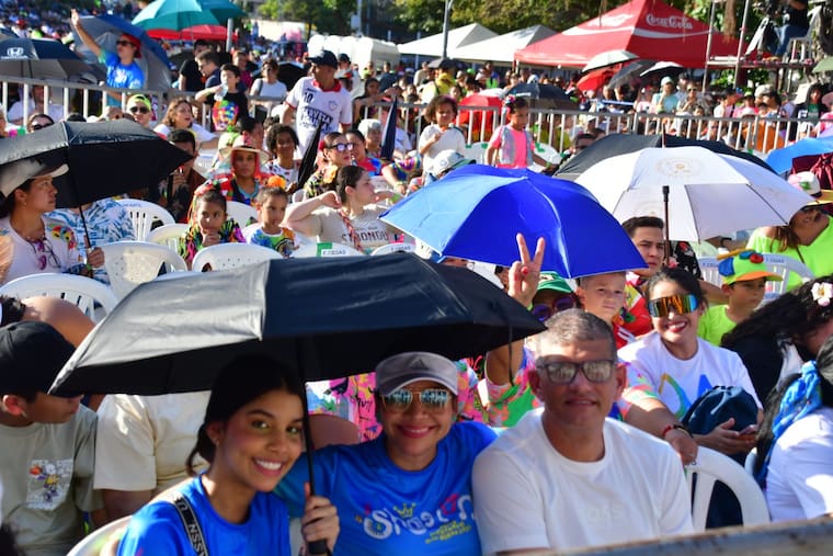 La Plaza de la Paz desde las primeras horas de la tarde siente la alegría de Sharon Acosta y Joshua Ortiz. El sol ilumina el espacio mientras familias enteras ocupan cada lugar. Niños con antifaces, coronas y trajes brillantes están a la espera de un increíble show, que dará el inicio de sus fiestas de Carnal en este 2026.