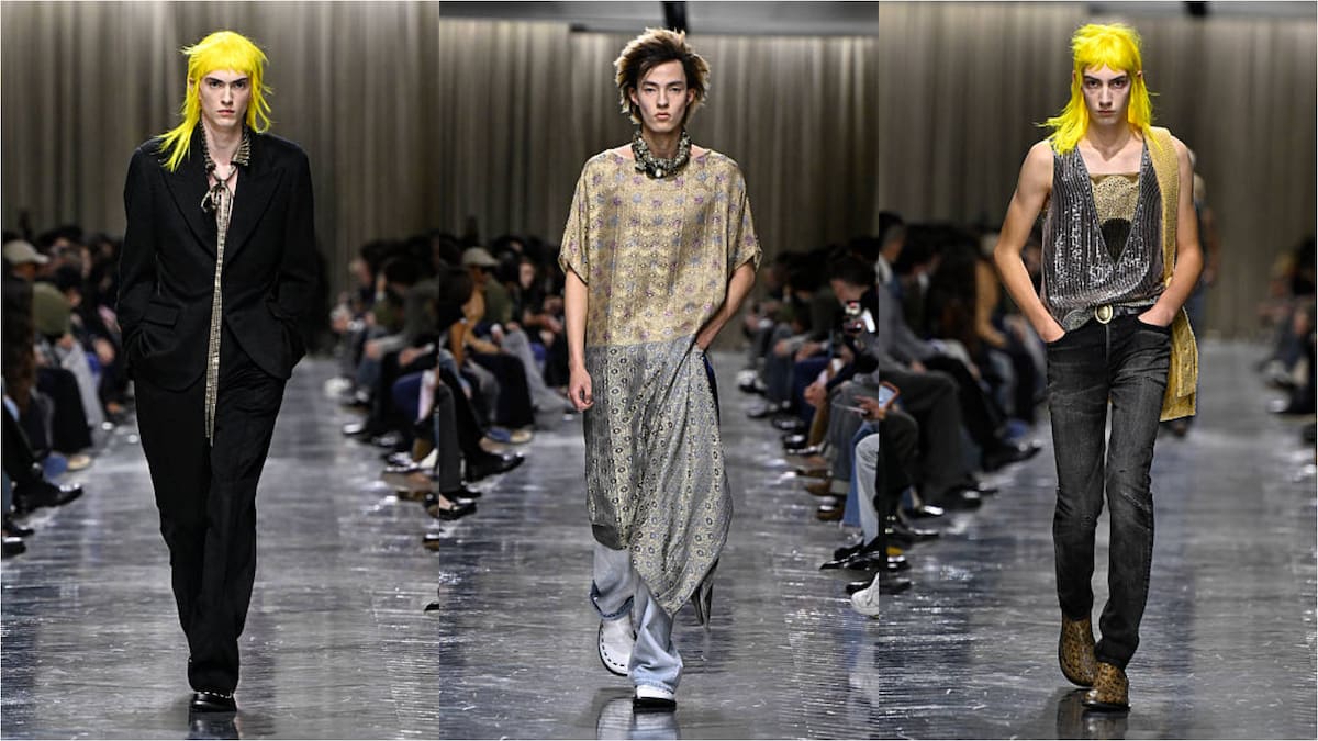 “El estilo como discurso, la alegría como instinto”, ha sido la frase que ha querido definir su moda, donde el ADN creativo de Anderson solapa el de la “maison” una vez más; algo que le funcionó con sumo éxito en Loewe, casa de la que fue director creativo entre 2013 y 2024.Con una apertura que recordaba el estilo de un joven David Bowie, en el décimo aniversario de su fallecimiento, el color vivo, en este caso amarillo, ha sido el protagonista de la peluca que portaban algunos de los modelos.