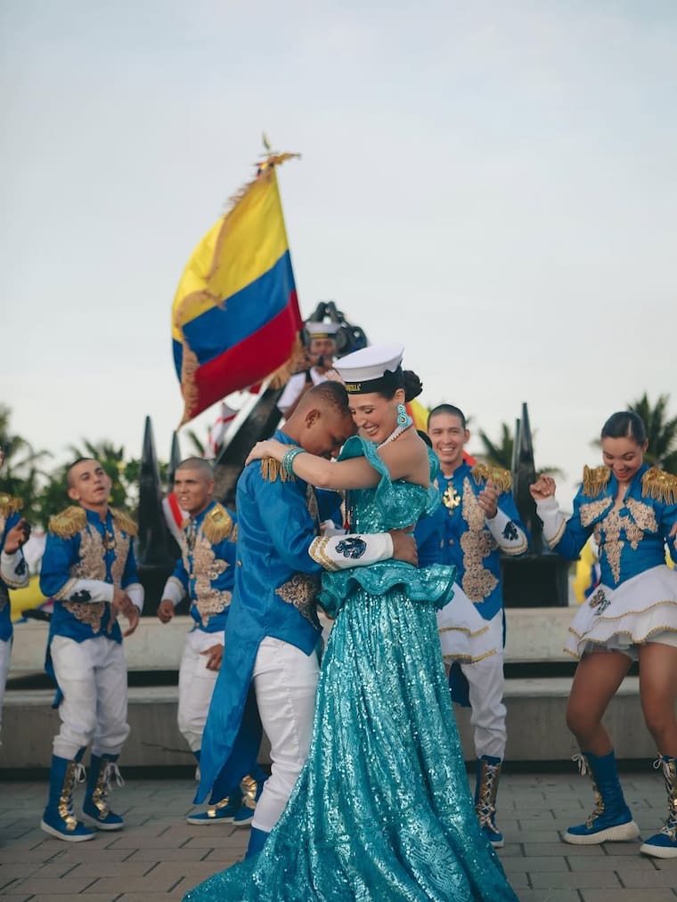 Bajo ese cielo abierto y con la brisa del río acompañando la ceremonia, la Reina del Carnaval 2026 recibió el título que la acredita como embajadora de la alegría, la identidad caribeña y el vínculo histórico entre el mar Caribe, el río Magdalena y los hombres y mujeres que visten el uniforme naval. Michelle asumió el reconocimiento con emoción y orgullo, consciente del significado que encierra portar estos símbolos.