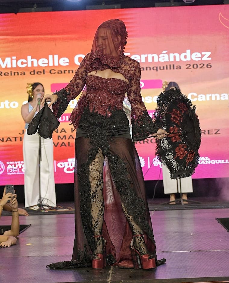 Salió la Reina Michelle Char Fernández con ¡El Luto es Venganza!, vestido que lucirá en el desfile de Joselito Carmaval. Pero primero, estudiantes que hacen parte del grupo de teatro personificaron el funeral del personaje de Joselito Carnaval. La muestra estuvo Tambien acompañada de la orquesta del maestro Roberto Torres. La pieza que intencionalmente es sexy, estuvo a cargo de Juliana Hoyos, Michelle Pérez, Nathalia Martinez y Laura León.