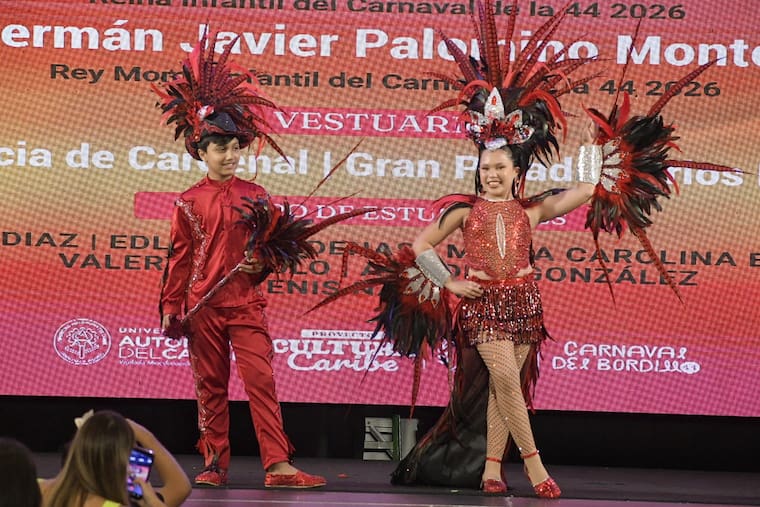 Sharon Acosta y Joshua Ortíz, reyes del Carnaval de los Niños salieron con vestuarios majestuosos llamados: Ancestros Caribe, los cuales lucirán en la Guacherna. Las estudiantes María Paola Vázquez, Nicole Vizcaíno, Ana Pereira, Vanessa Ramírez, María José Daza, Valeria Tatis y Karoline Carrillo, fueron las creadoras de las bellas piezas.