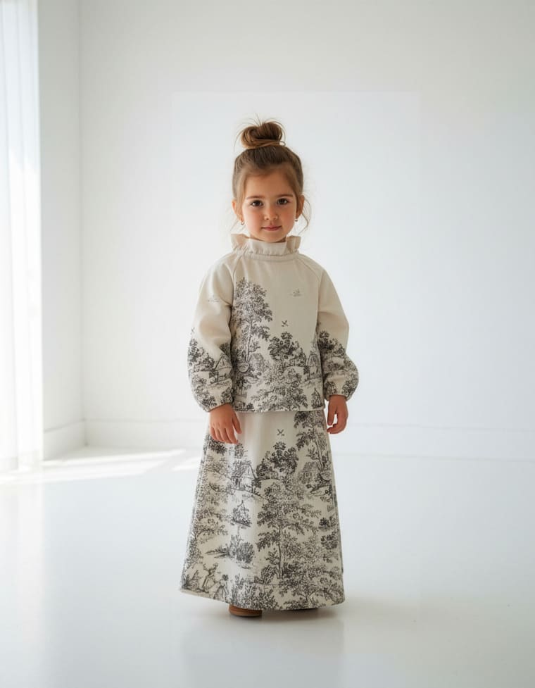 En ‘Son un Cuento’, la ropa se convierte en un lienzo narrativo. Cada vestido, manta o conjunto parte de una historia escrita por la propia Karen, ilustrada especialmente para el patrón de la prenda sin diseños repetitivos y acompañada por un personaje textil que se esconde en un bolsillo.