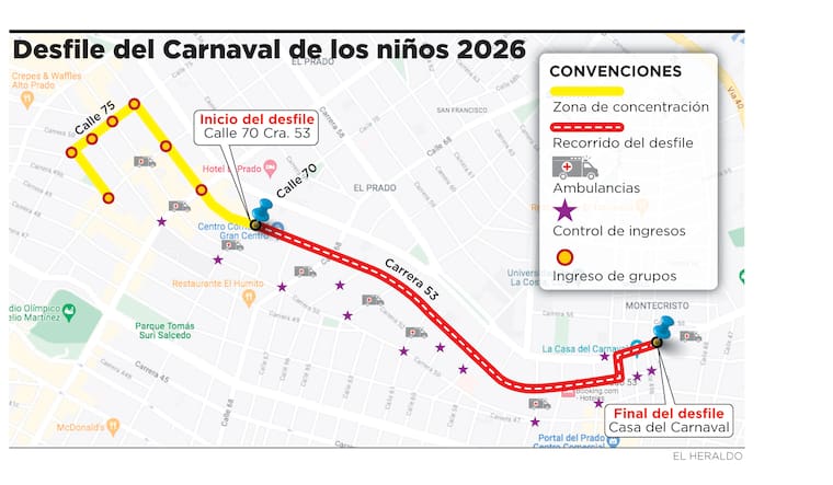 El desfile contará con el acompañamiento de los organismos de socorro y el apoyo de 10 ambulancias, distribuidas en los siguientes puntos: parque José Martí (calle 74 entre carreras 49B y 49C); carrera 53 con calles 74, 72, 70, 68, 64, 61 y 55; así como en la carrera 54 con calle 53 y carrera 54 con calle 48.