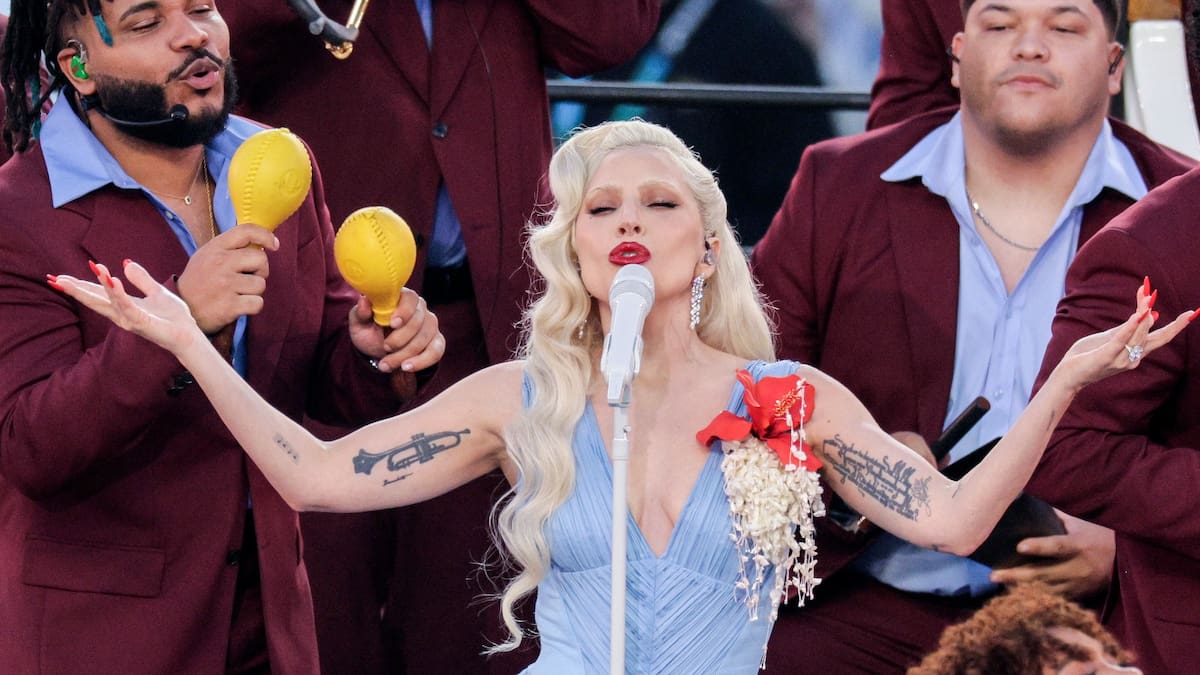 Con un vestido a medida de la firma dominicana Luar y con un ejemplar de la Flor de Maga puertorriquña sobre uno de sus tirantes. Así apareció y cantó Lady Gaga en el Super Bowl, todo un gesto de apoyo a lo latino en la gran noche de Bad Bunny y de la defensa de los inmigrantes en Estados Unidos.