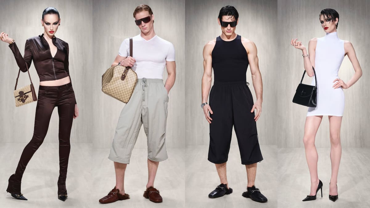 El diseñador no olvidó los guiños históricos a la marca en su primera colección, integrando códigos del archivo como el monograma GG, el icónico motivo Flora, o la estética de los años noventa de la era de Tom Ford.