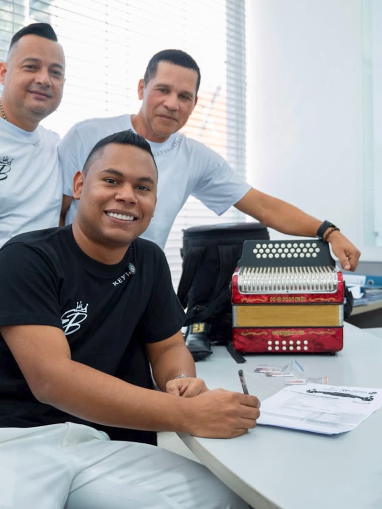 José Juan Camilo hace tres años hace parte del equipo de trabajo de Silvestre, en el que comparte escenario con el también acordeonero barranquillero Rubén Lanao Jr.