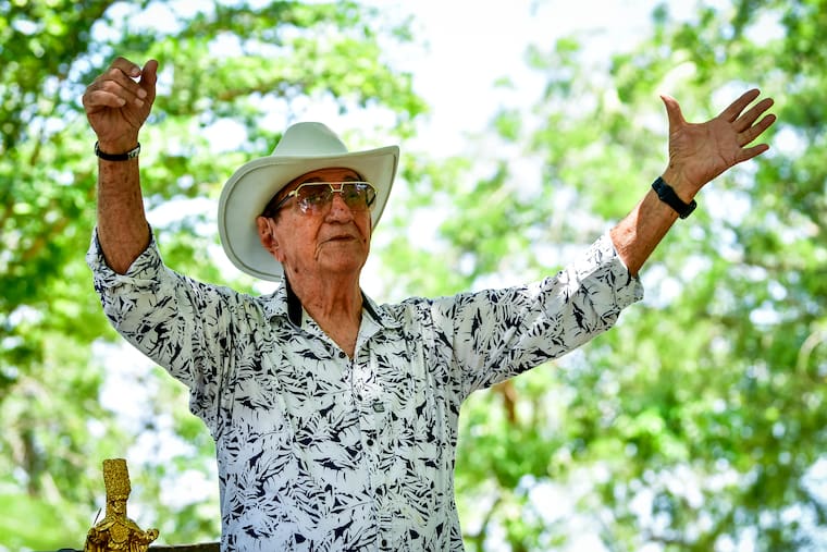 Son dos gotas de agua por donde quiera que se les mire. Su nariz prominente, tono de voz parecido, el gusto por el sombrero, las gafas oscuras y una que otra cadena dorada hacen que cualquiera vea en ellos casi que a una misma persona en su versión adulta y joven. Se trata del maestro Dolcey Julio Gutiérrez De la Cruz, el ‘Rey de la Música Picante’, y de Dolcey Miguel, su heredero musical.