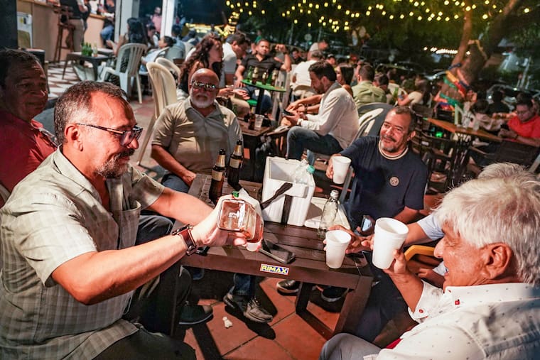 Osvaldo Mejía es uno de esos clientes incondicionales que encuentra en estas sillas la pausa necesaria después de una jornada laboral pesada. Su itinerario es sencillo, pero tremendamente efectivo. Viene a verse el partidito de fútbol, a tomarse tres o cuatro cervezas bien heladas con su compañero de tragos y luego sale directo, a paso firme, a descansar a su hogar.
