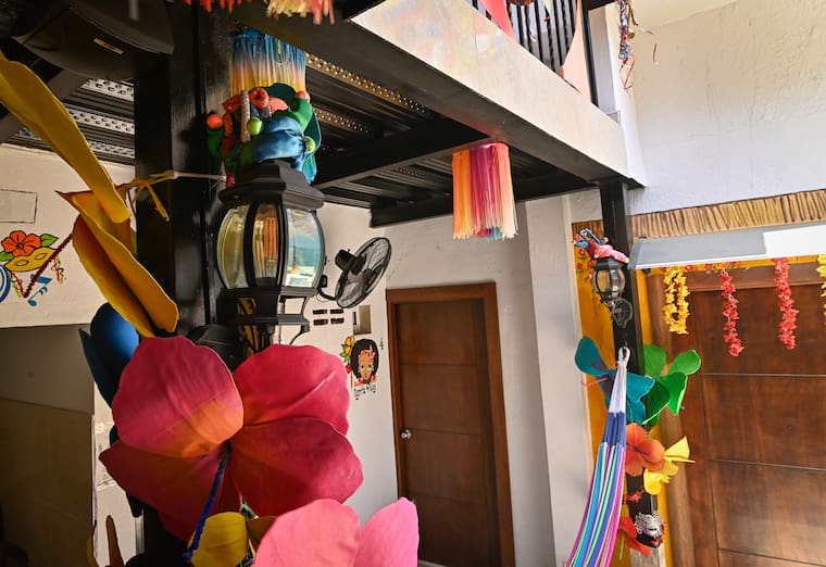 Hoy es un hostal, pero no como cualquier otro. El que cruza esa puerta se mete de lleno en su esencia. Hay detalles que hablan del Carnaval de Barranquilla, de la música, de la forma en que Barrio Abajo ha construido su identidad con los años.