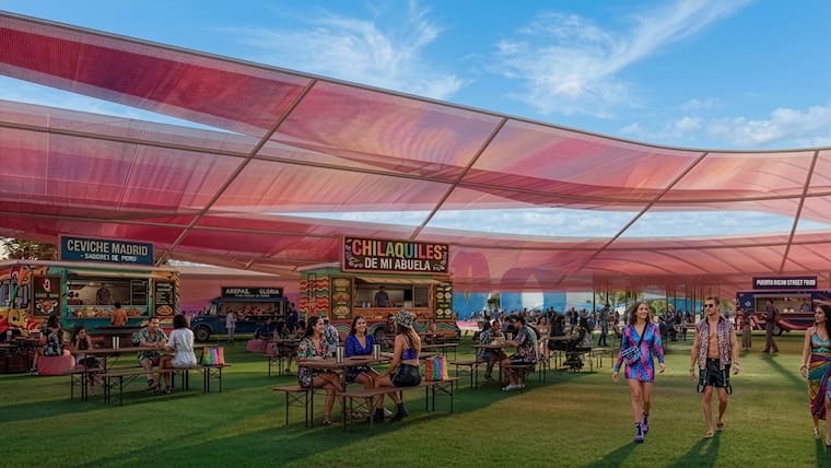 La idea es que las personas no solo lleguen al concierto, sino que recorran el lugar. Habrá caminos curvos, algunos cubiertos con telas recicladas, que conectarán zonas de comida, espacios para niños y áreas de descanso. Será una experiencia completa, más allá del espectáculo musical de Shakira.