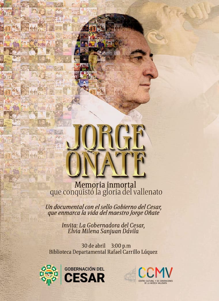 Precisamente, para que el mundo entero pueda conocer mucho más de ‘El Jilguero de América’, el Gobierno del Cesar produjo el documental ‘Jorge Oñate, memoria inmortal que conquistó la gloria del vallenato’, que será presentado este jueves 30 de abril en la Biblioteca Departamental Rafael Carrillo Lúquez, a partir de las 3:00 p. m., en el marco del Festival de la Leyenda Vallenata.