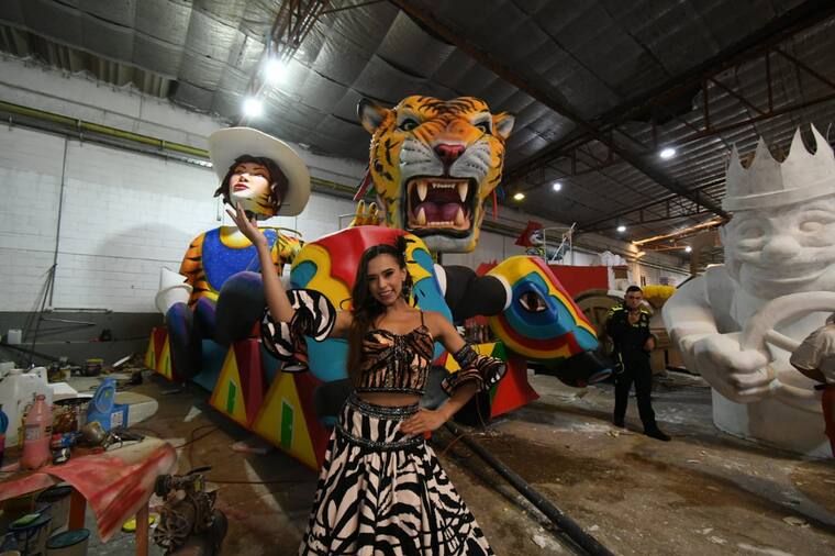 La reina del Carnaval de Barranquilla, Natalia De Castro, visitó a los encargados de dejar listas para carrozas para el famoso desfile de la Vía 40.
