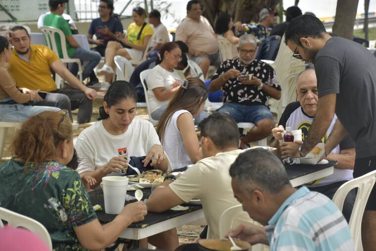 Las meses ya estaban llenas de comensales que degustaban arepas de huevo, butifarras, sancochos y pescados fritos hechos con el toque único de mujeres cabeza de familia de este sector icónico de la ciudad.