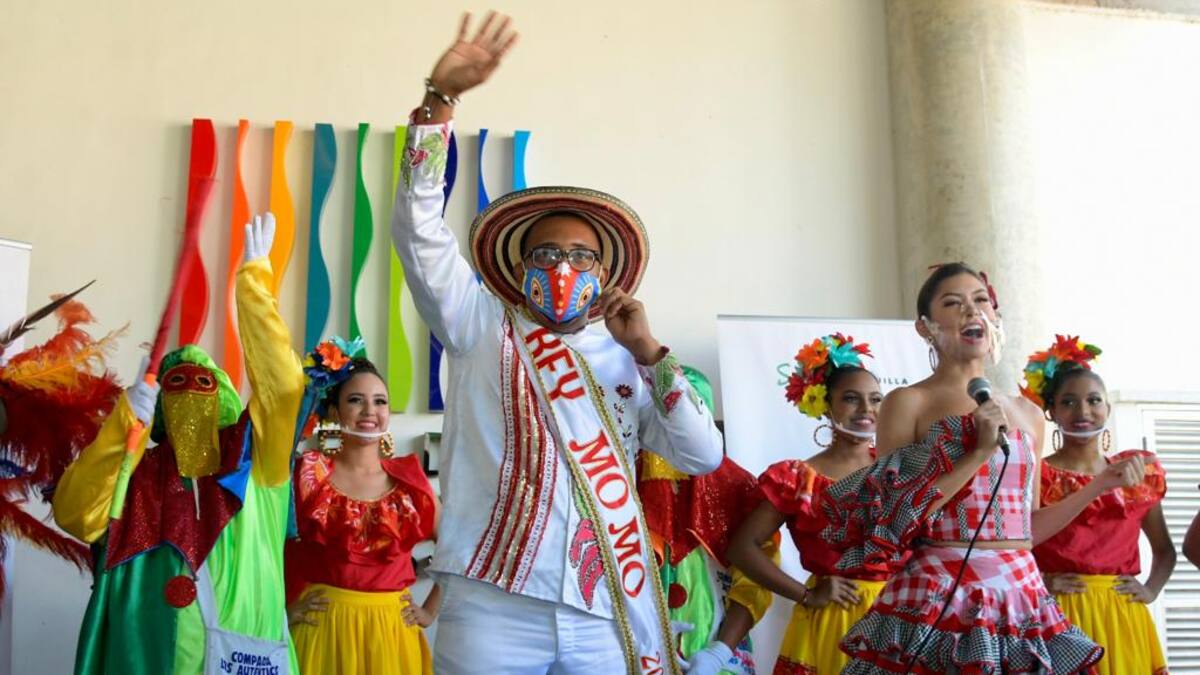 Kevin Torres estuvo acompañado por su comparsa y comitiva del barrio Las Nieves. Se mostró más que emocionado y dijo 'que este Carnaval vale por dos'. De igual forma invitó a todo el público barranquillero a vacunarse.