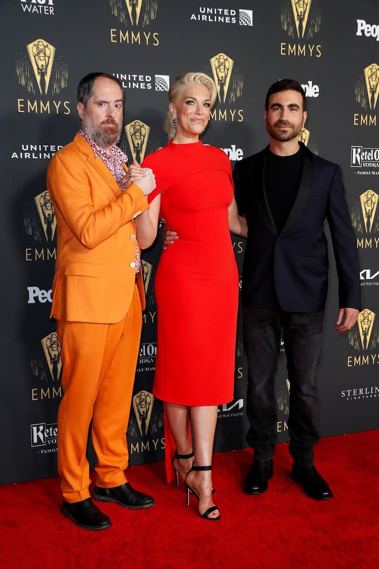 (De izquierda a derecha) El actor estadounidense Brendan Hunt, la actriz británica Hannah Waddingham y el actor británico Brett Goldstein.