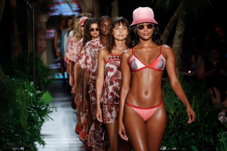 Entre palmeras y al ritmo de son cubano fueron desvelando los diseños en un desfile que arrancó con intensos colores en trajes de baño, salidas de baño, pareos y sombreros para luego ir hacia sonidos con el espíritu del grupo de rap cubano Orishas y modernas fusiones de temas como ‘Guantanamera’.