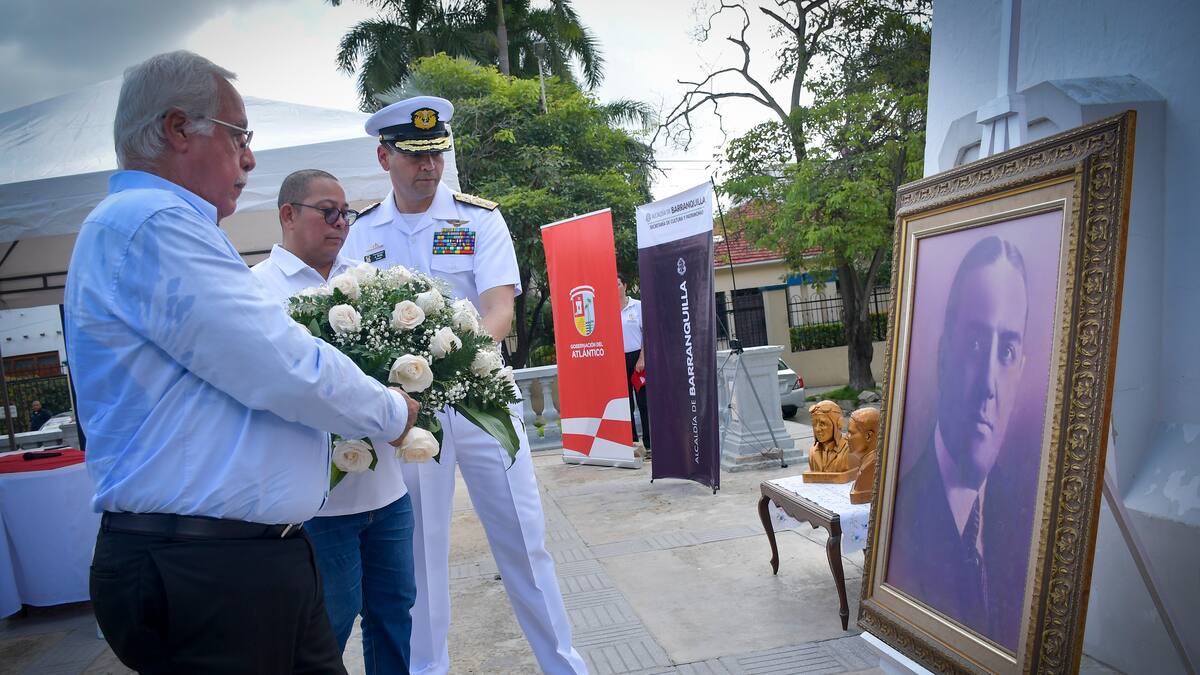 A las 9:30 de la mañana se dio inicio para honrar la memoria de un hombre multifacético y audaz que transformo para siempre el panorama nacional e industrial. La Banda instrumental de la Escuela Naval entonó los distinguidos himnos nacional, departamental y finalizó con el de Barranquilla.