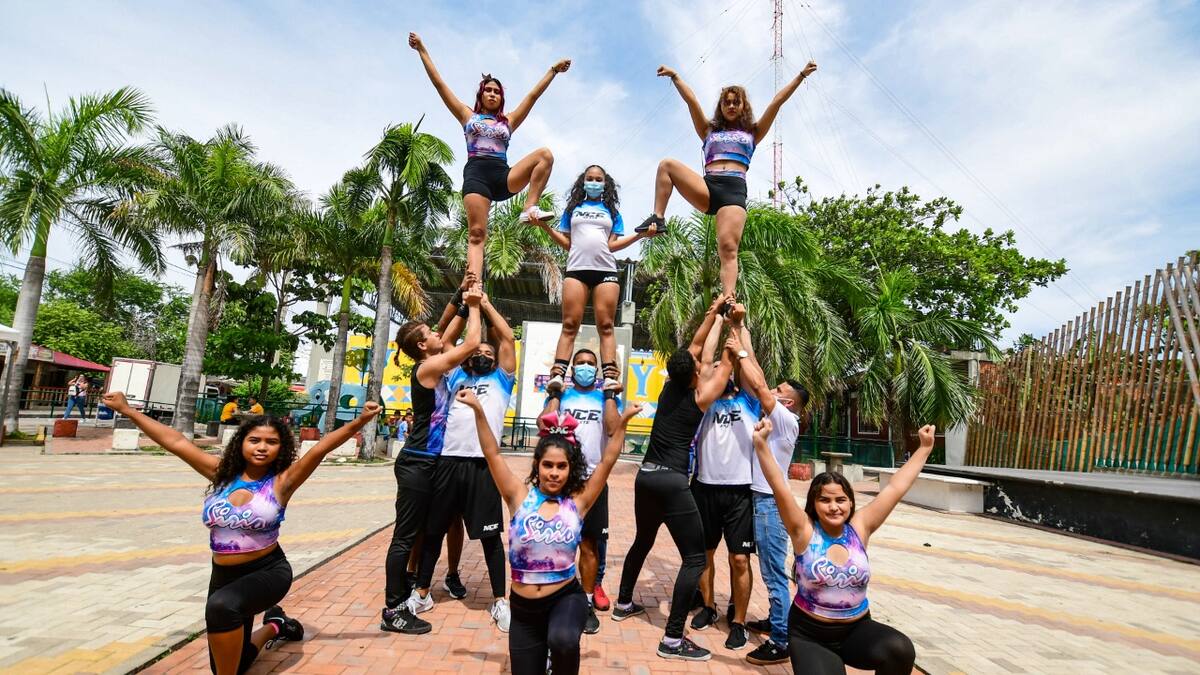 Unos jóvenes talentosos nos esperaban en la plazoleta del barrio La Paz, en Barranquilla. Cuando llegamos, unas chicas se maquillaban, otras terminaban de peinarse y de acomodarse el uniforme de Fire Star y NCE, mientras los chicos interactuaban entre sí.