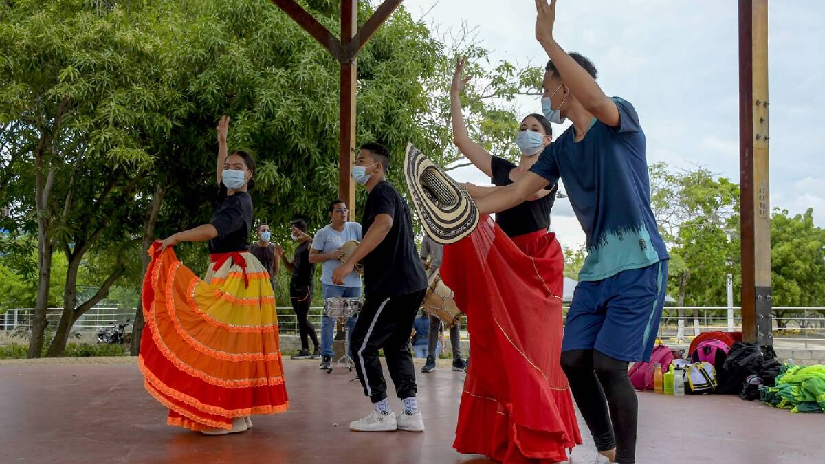 Los jóvenes se han preparado disciplinadamente. Uno de sus últimos ensayos antes de 'el gran día' fue este lunes festivo. En medio de una silenciosa tarde en el Parque Amira de la Rosa, irrumpió el sonido de los tambores. En el espacio practicaron las piezas de baile, y los músicos afinaron sus notas. Con polleras coloridas y sombrero vueltiao en mano dieron inicio al ensayo con el que incluso captaron la atención de varios visitantes.