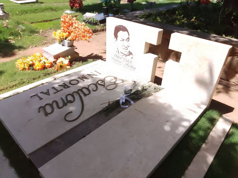 Dos días después fue sepultado y un ‘río de personas’ caminó hasta el cementerio Ecce Homo, donde están sus restos, en el recorrido no dejaba de sonar Los caminos de la vida. La tumba es la 1-2-33, y está justo al lado de Mama Vila, y detrás de Diomedes Díaz y Martín Elías.