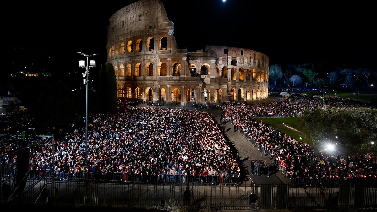 Tras dos años de confinamiento, el Santo Viacrucis de la fe católica regresó al coliseo romano.