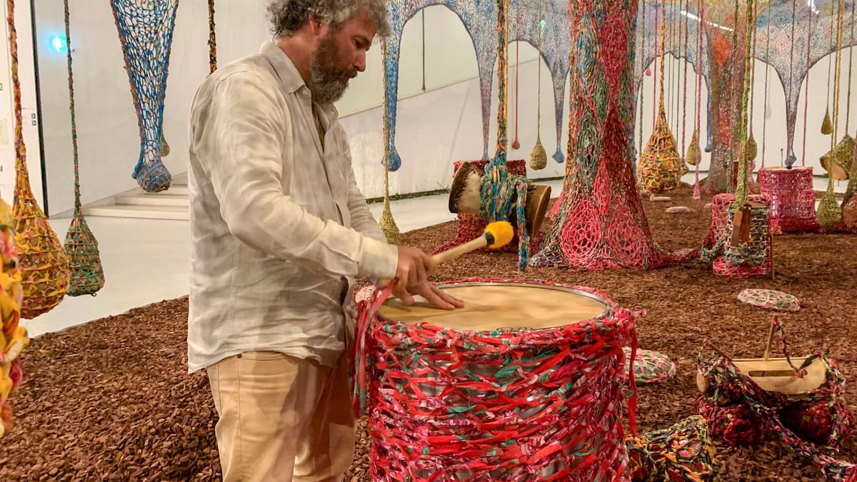 La instalación 'Nuestro barco tambor tierra' es una de las mayores esculturas realizadas hasta la fecha por Ernesto Neto y estará abierta al público hasta octubre de 2024.