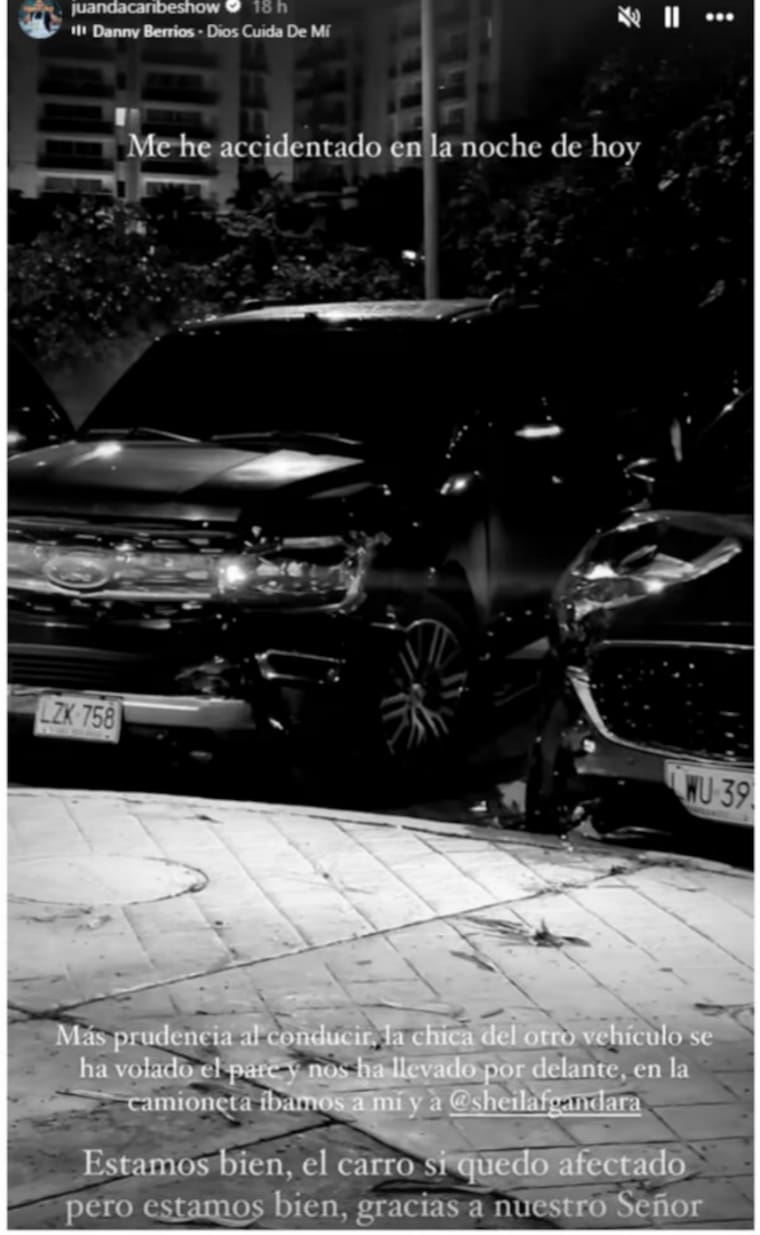 En una segunda publicación, 'Juanda' contó que sufrió leves lesiones en una pierna, brazo, mano, el cuello y el oído, esto debido a la activación de los airbags, por el fuerte golpe.
