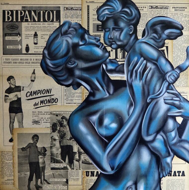 “En mis cuadros hago una composición con periódicos antiguos, que son de 1930 y 1950. Me me encanta la historia y todo lo que tiene que ver con collage. Estando allá me dediqué a coleccionar periódicos, cómics retro y billetes antiguos, precisamente para inmortalizarlos y convertirlos en piezas únicas”.