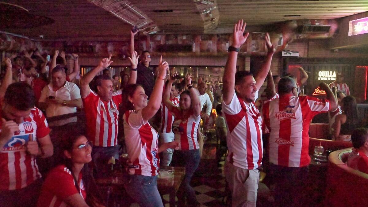 Con una ola de emociones que reunía los gritos y música decenas de barranquilleros que se dieron cita en el bar deportivo Coliseo Sport Bar celebraron el gol de Carlos Bacca contra Medellín.
