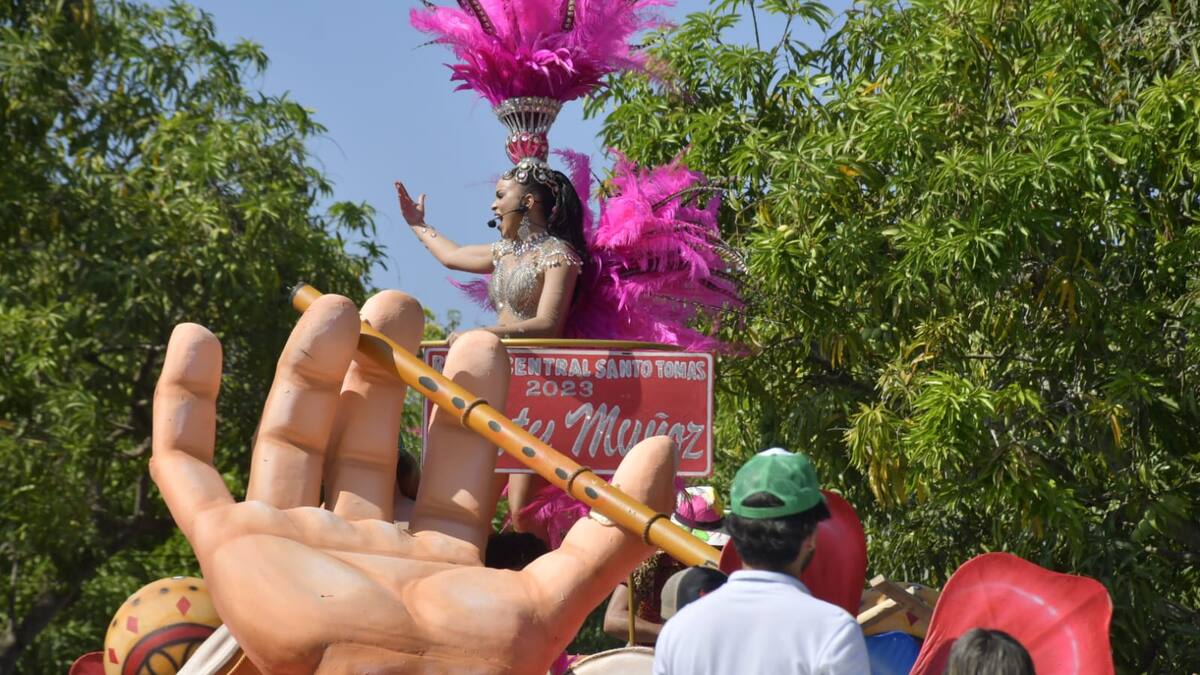 Uno de los momentos más aplaudidos por los tomasinos fue la llegada de la Reina Central del municipio, Natalia Muñoz, que arriba de su carroza empezó a lanzar flores en medio de una carroza recreada por una mano grande que sostenía una flauta.
