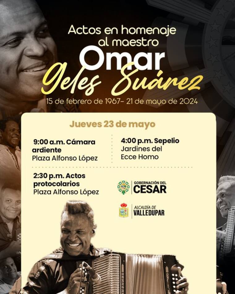 Para ello, emitieron el Decreto 000699, que determina exaltar la memoria de Omar Antonio Geles Suárez, destacado acordeonero, compositor, arreglista y cantante de la música vallenata, quien durante más de 40 años de carrera musical le aportó a la grandeza del folclor vallenato, convirtiéndose en un referente musical para las nuevas generaciones de la música interpretada con caja, guacharaca y acordeón.
