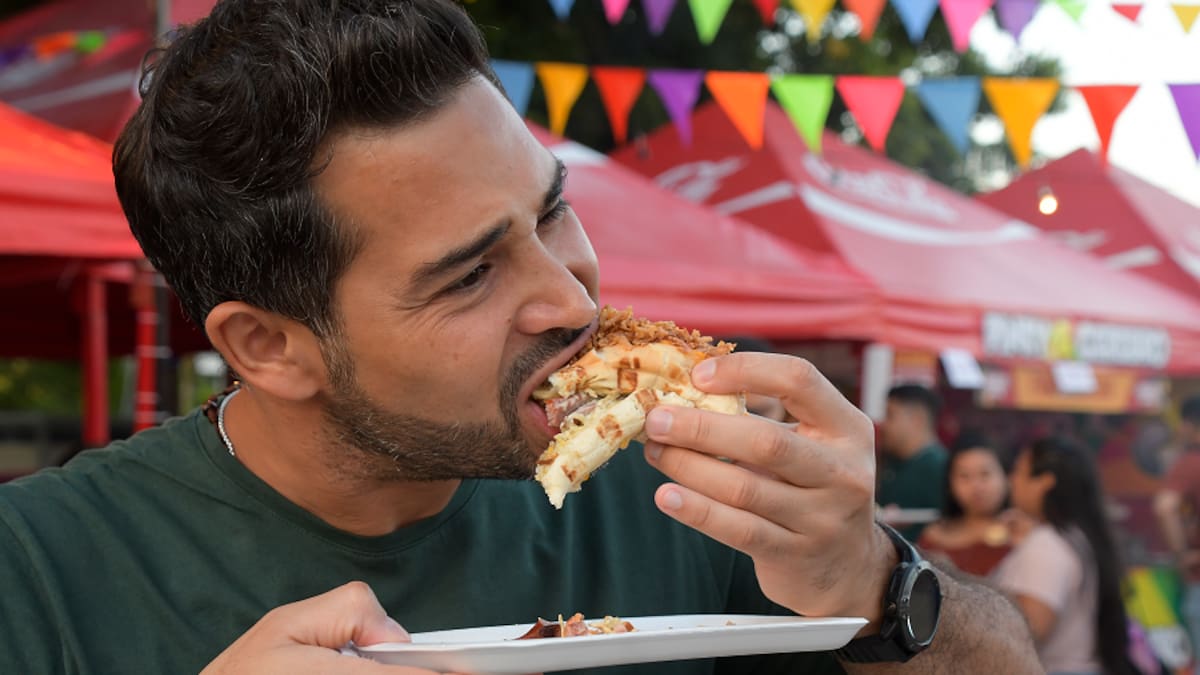 Breiner Andrade llegó con la ilusión de satisfacer sus antojos y lo logró. Los numerosos puestos pusieron en duda su decisión, por lo que decidió probar más de cuatro perros.