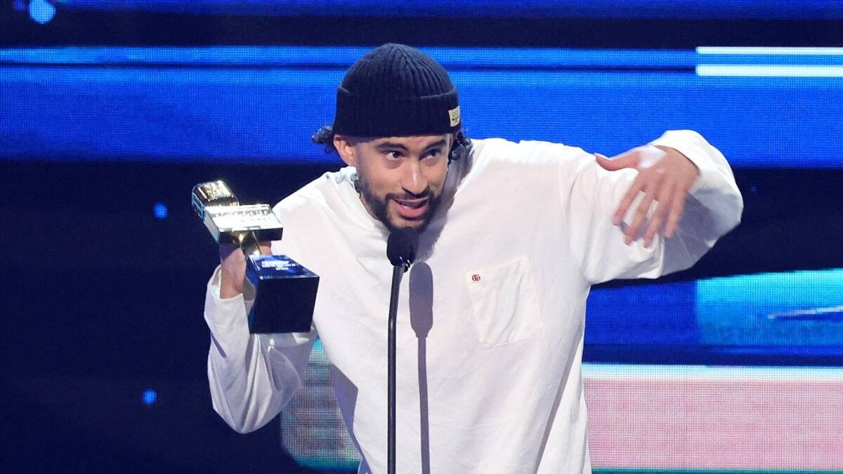 Bad Bunny, ganador de la categoría artista Latino del Año. Es su segundo premio de la noche.