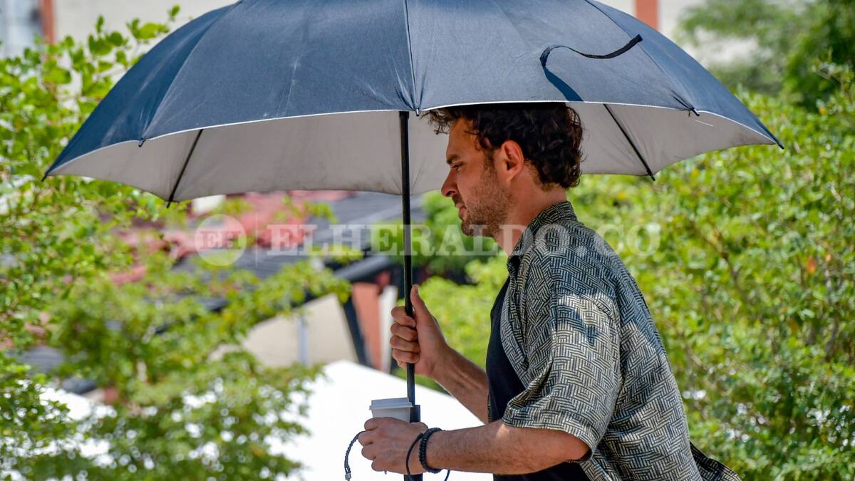 Ocultándose con una sombrilla negra no solo para evitar el inclemente sol del mediodía barranquillero, sino para también evitar ser visto, el reconocido actor Manolo Cardona paseó por la plaza para ir al set de grabación, siendo uno de los protagonistas.