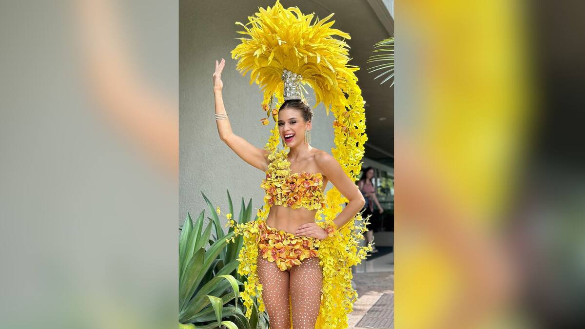 Vestida de amarillo como símbolo de belleza y esplendor, la reina del Carnaval de Barranquilla 2025, Tatiana Angulo Fernández De Castro, hará su aparición en la tarde de este sábado en Pereira en el desfile de las Fiestas de la Cosecha.
