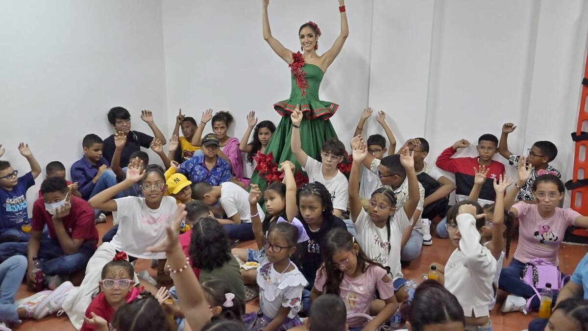 La soberana llegó a la Fundación María Elena Restrepo (Fundavé) para regalar material especializado para esta población.