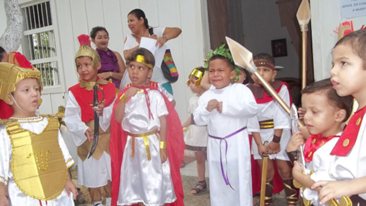 Para algunos es algo similar al Día de los Niños, llevan puesto vestuarios poco habituales, accesorios que simulan a los romanos, sus cabezas cubiertas con tela de encaje y uno que dice llamarse Jesús, tiene su tronco descubierto y una corona tejida que reposa en su frente.