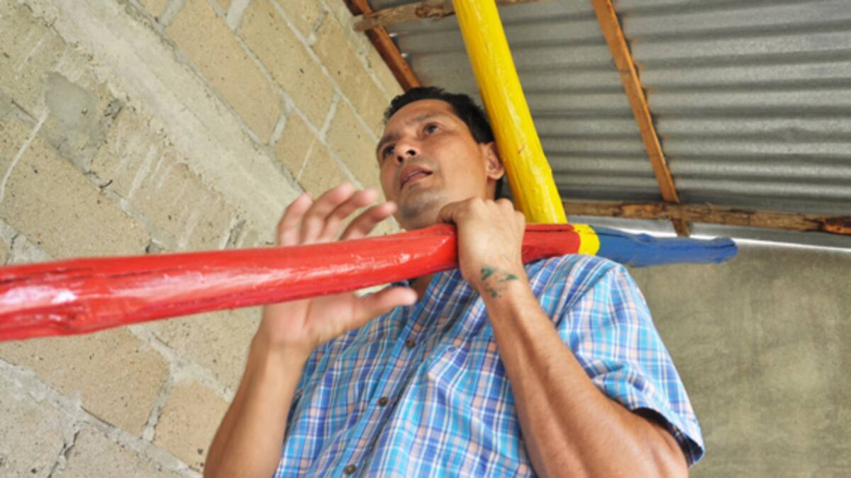 'Pinté el madero vertical de amarillo porque simboliza la riqueza de Nación que está divida entre dos partidos, el Conservador (azul) y el Liberal (rojo) y esto no debe ser así, no es cuestión de partidos, sino de unidad, la riqueza es de todos. No se puede olvidar también que el azul son los mares y el rojo la sangre de los que han luchado por la libertad', explica.