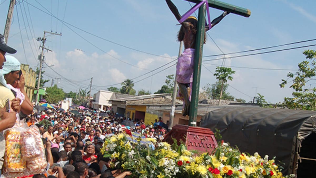 Más de cien mil personas se congregan en el municipio de San Benito de Abad para celebrar las fiestas del Señor de los Milagros. En el año se hacen dos peregrinaciones, explica Leidy Martínez, habitante del municipio. 'En el año conmemoramos al Señor de los Milagros en dos ocasiones', dice.