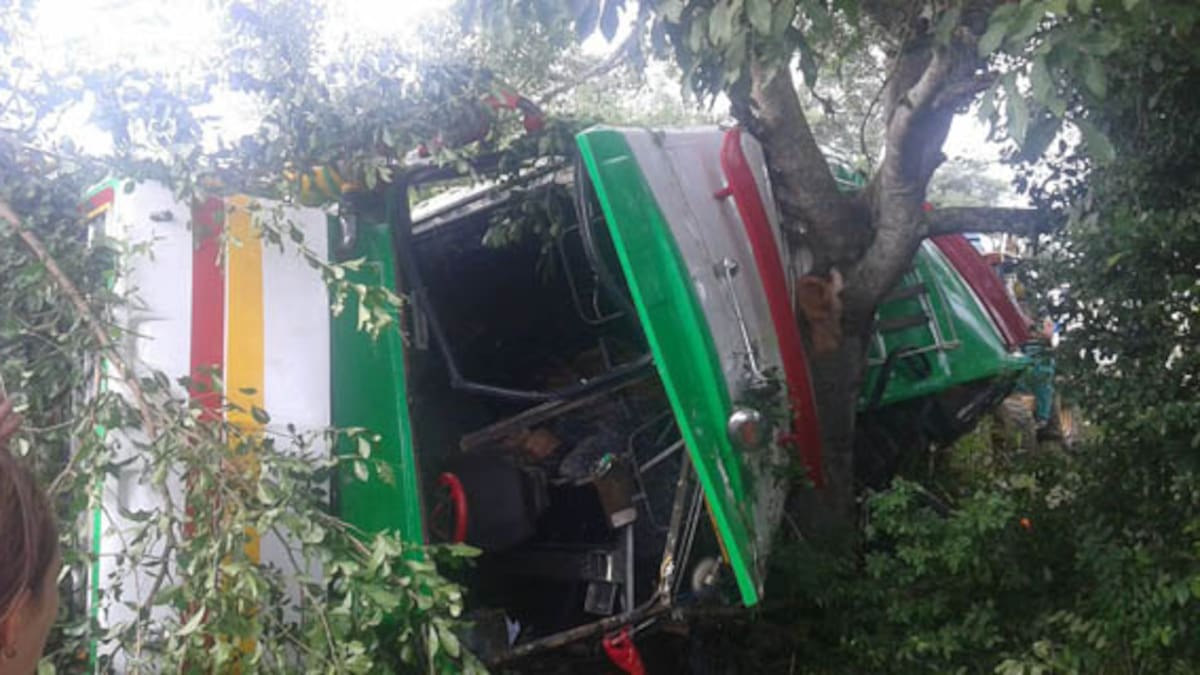 El vehículo afiliado a la empresa Transportes González, placas TNB-251, transitaba por ese, entre las poblaciones de Las Majaguas y Palmira, cuando se salió de la vía, se volcó y chocó un árbol.