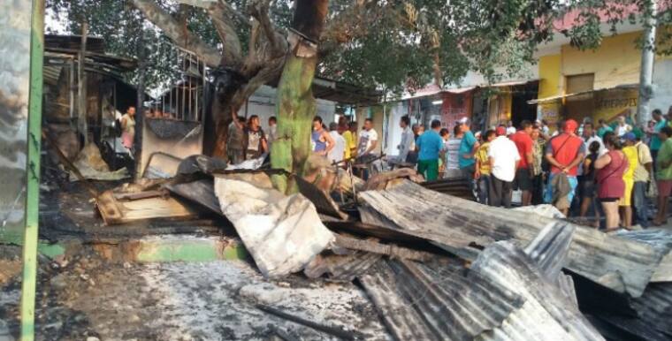 Corozal, Sucre. Pérdidas millonarias dejó una conflagración que se presentó la madrugada de este jueves en cuatro negocios en la Plaza de Mercado La Macarena.