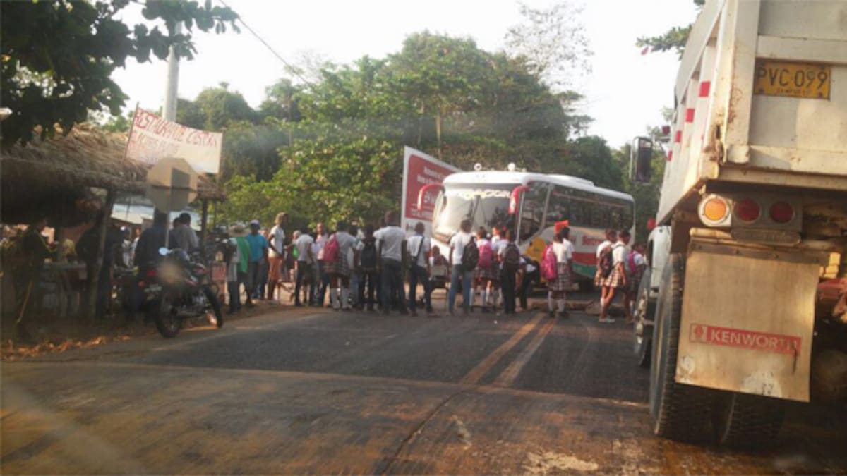 Estudiantes del Centro Educativo Chinulito bloquearon la Troncal de Occidente como protesta porque no cuentan con transporte escolar.