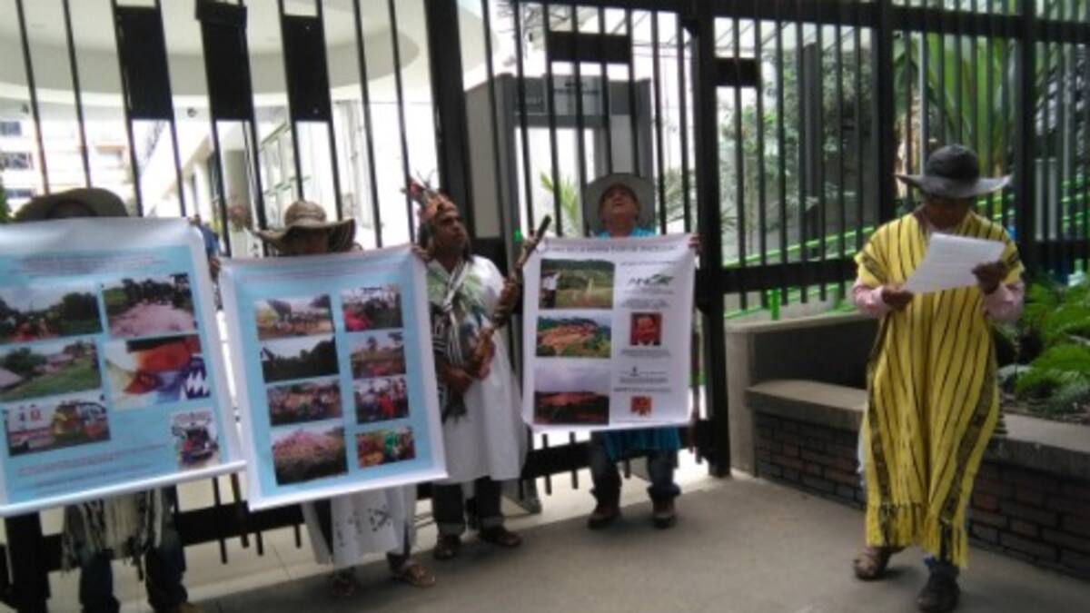Indígenas del Cabildo Las Flores Chincelejo se plantaron esta tarde a la entrada de la Autoridad Nacional de Licencias Ambientales (Anla), en Bogotá, en protesta por la construcción de la doble calzada Sincelejo-Toluviejo porque están destruyendo la Sierra Flor, un territorio ancestral..