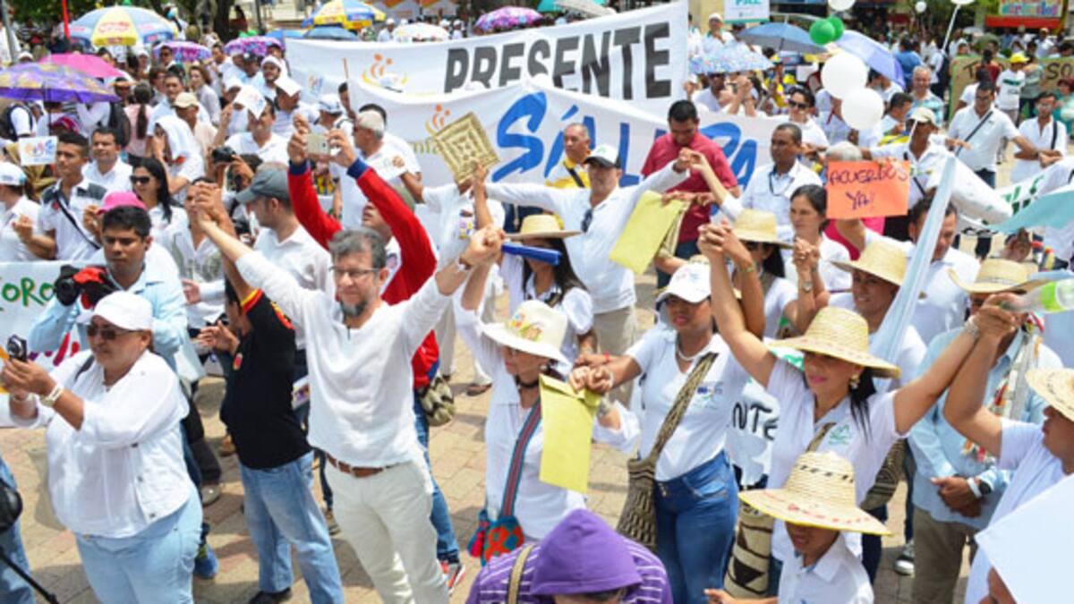 A la concurrida marcha que fue convocada por los miembros de la Mesa Sucreña por la Paz se unieron el gobernador Édgar Martínez, la Red Desarrollo y Paz de los Montes de María, Tejedoras de la Memoria, mujeres víctimas de San Onofre, el Movice y otras organizaciones sociales que están ansiosas de una Colombia en Paz.