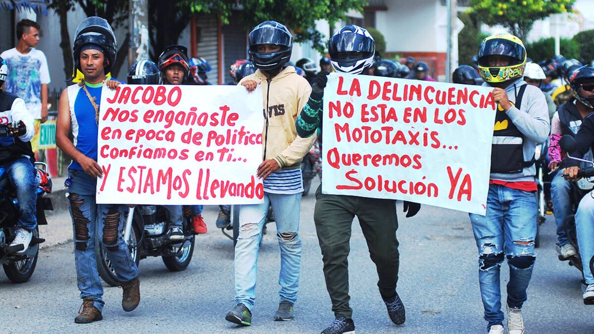 Un grupo de mototaxistas arribó al lugar y con pancartas en mano quisieron iniciar esa marcha y recorrieron los barrios San Francisco y Versalles hasta llegar a la Cruz de Mayo, de donde no los dejaron continuar hasta el Centro, como era su interés. Sin embargo, hubo quienes lograron escaparse y hacer desórdenes en Puerto Escondido y la Avenida San Carlos.