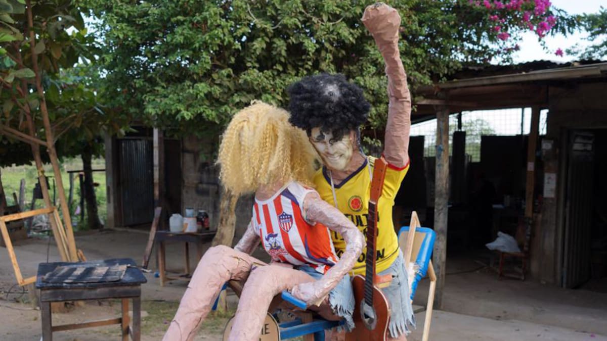 'Carlos llévame en tu bicicleta por la tierra de los yabolines', son algunas de las frases que se pueden leer en los atuendos que tiene el muñeco que hace alusión al tema grabado por la barranquillera y el samario, el cual ha sonado en todo el mundo.