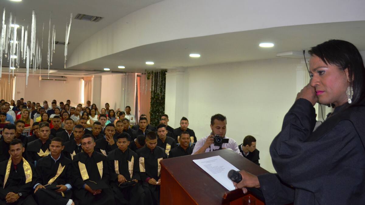 'Voy a hablar muy poco porque mi voz se entre corta, yo he sufrido mucho, soy una chicha trans de Sincelejo, y al terminar mis estudios pude demostrar que nosotras no nacimos para ser prostitutas o peluqueras, sino que tenemos todas las habilidades y espero que mis compañeras tomen mi ejemplo', dijo en su discurso.